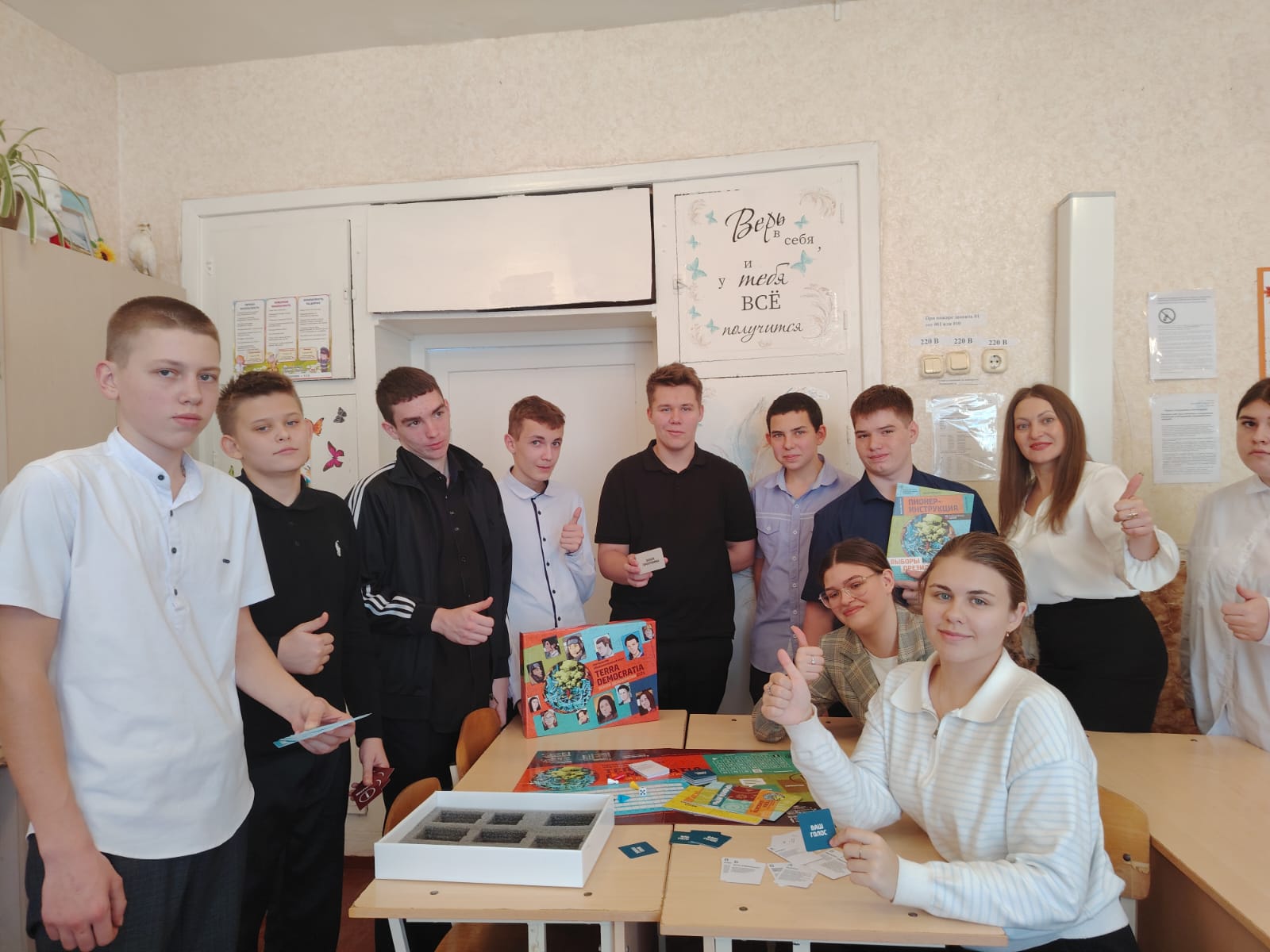 Елена Кузьмина член территориальной избирательной комиссии пригласила школьников 9 класса перенестись на сто лет вперед в новое государство Полис, где ученики познакомились с основами избирательного права, проявили знание Конституции РФ, избрав президента и правительство.